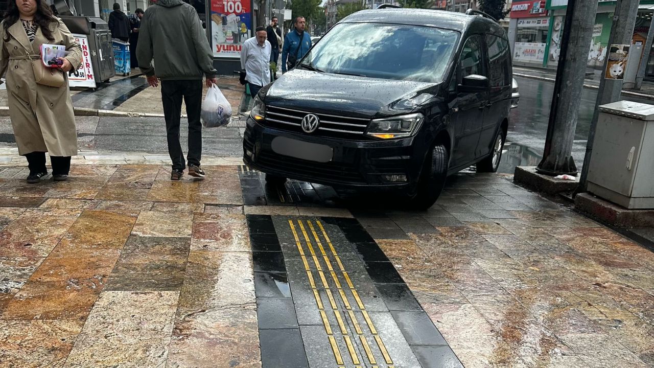 Düzce’de Kaldırım İşgali Pes Dedirtti! Görme Engelli Yolu Bile Araçlarla Kaplandı