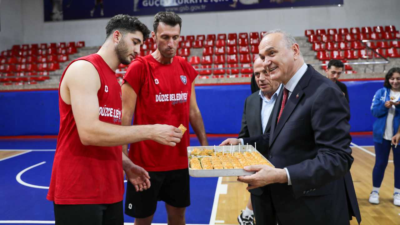 DMHA DÜZCE-Başkan Özlü, başarılı sporculara baklava ikramında bulunarak moral verdi. Özlü, “Spor Şehri Düzce hedefimiz doğrultusunda salon sporlarına önem veriyoruz. Takımımız 1. Lig’de mücadele ediyor ve sezonu üst sıralarda tamamlamayı hedefliyoruz. Takımımıza destek veren herkese teşekkür ediyor, sporcularımıza başarılar diliyorum” dedi.