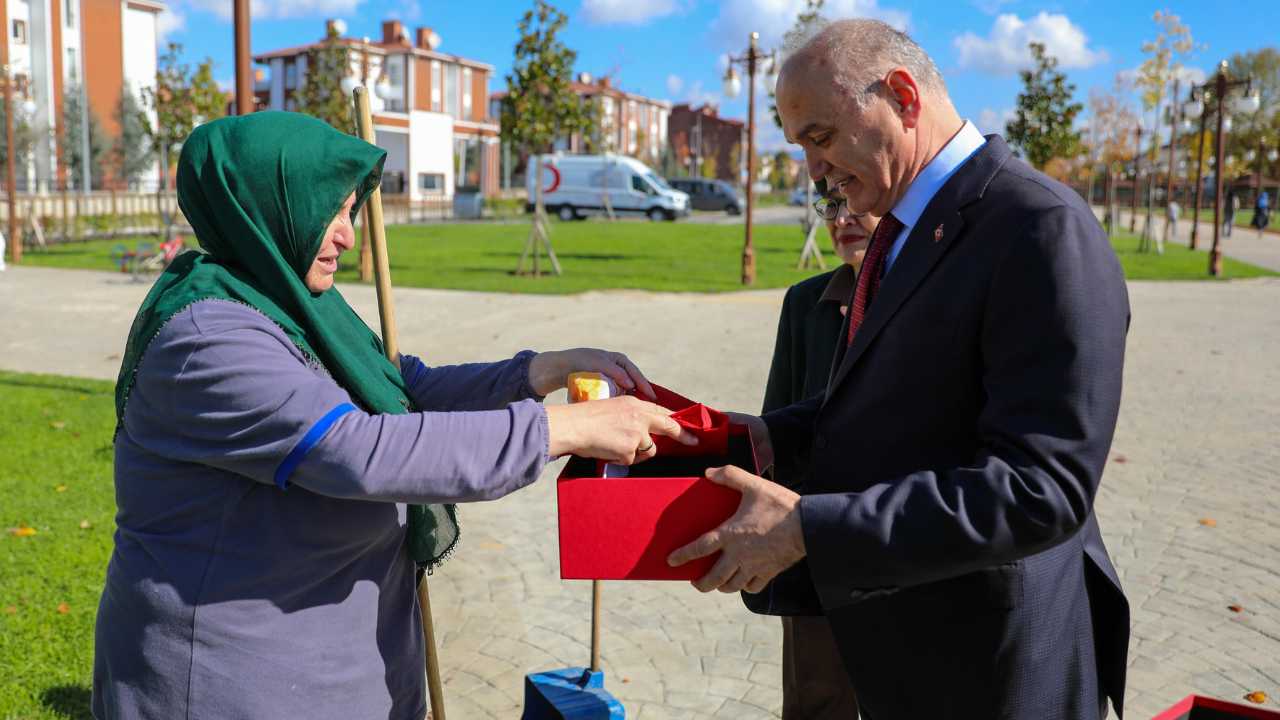 Düzce Belediyesi’nin 29 Ekim Cumhuriyet Bayramı’na özel düzenlediği sosyal deneyde, Türk bayrağını yere düşürmemek için gösterdiği hassasiyetle milyonların gönlünü fetheden temizlik personeli Rukiye Tuna, Belediye Başkanı Dr. Faruk Özlü ve eşi Prof. Dr. Onur Özlü tarafından görev başında ziyaret edildi.